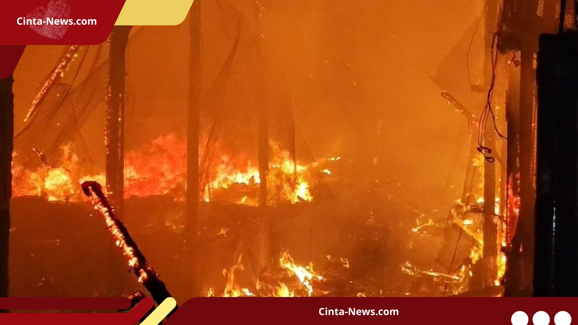 Cinta-news.com – Kobaran api hebat tiba-tiba menyergap dan melalap Pasar Tradisional Lemahabang, Kabupaten Cirebon, Jawa Barat, pada Selasa malam (30/12/2025). Api yang diduga berasal dari bagian tengah pasar itu langsung membesar dengan kecepatan tinggi dan merembet dengan ganas. Lidah api pun melahap puluhan kios pedagang hanya dalam hitungan menit. Peristiwa dahsyat ini langsung memicu kepanikan massal di antara para pedagang.