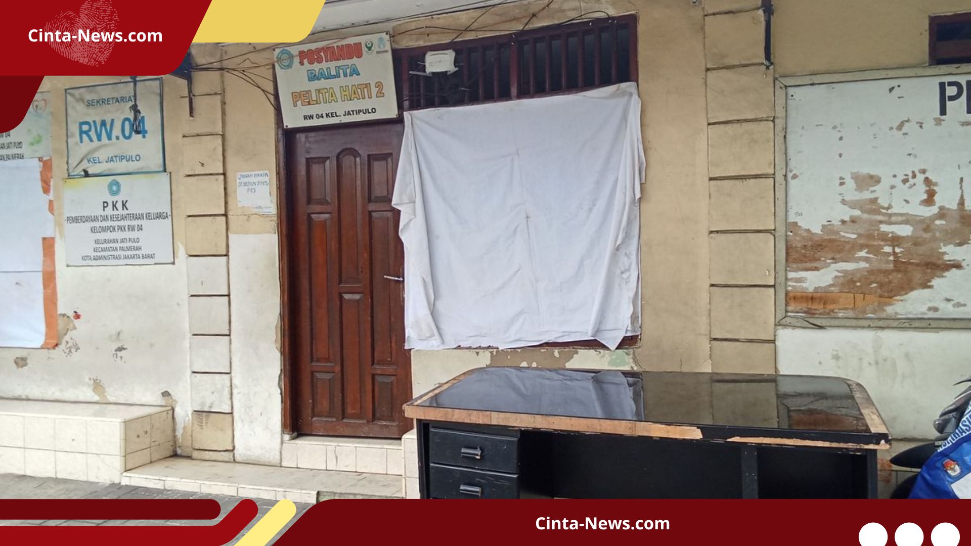 Pantauan langsung di lokasi menunjukkan dampak kerusakan yang nyata. Kantor Sekretariat RW 05 Jatipulo, Palmerah, menjadi salah satu korban dengan jendela depan yang hancur berantakan.