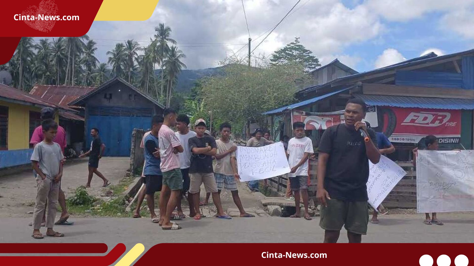 AMBON, Cinta-news.com – Warga Dusun Tanah Goyang, Maluku, menolak keras pembangunan minimarket berjaringan. Mereka langsung menggelar aksi demo pada Kamis (1/1/2026). Para peserta dengan semangat membawa spanduk berisi penolakan. Warga dan pedagang lokal juga aktif menggalang dukungan. Mereka mengumpulkan tanda tangan untuk memperkuat sikapnya.